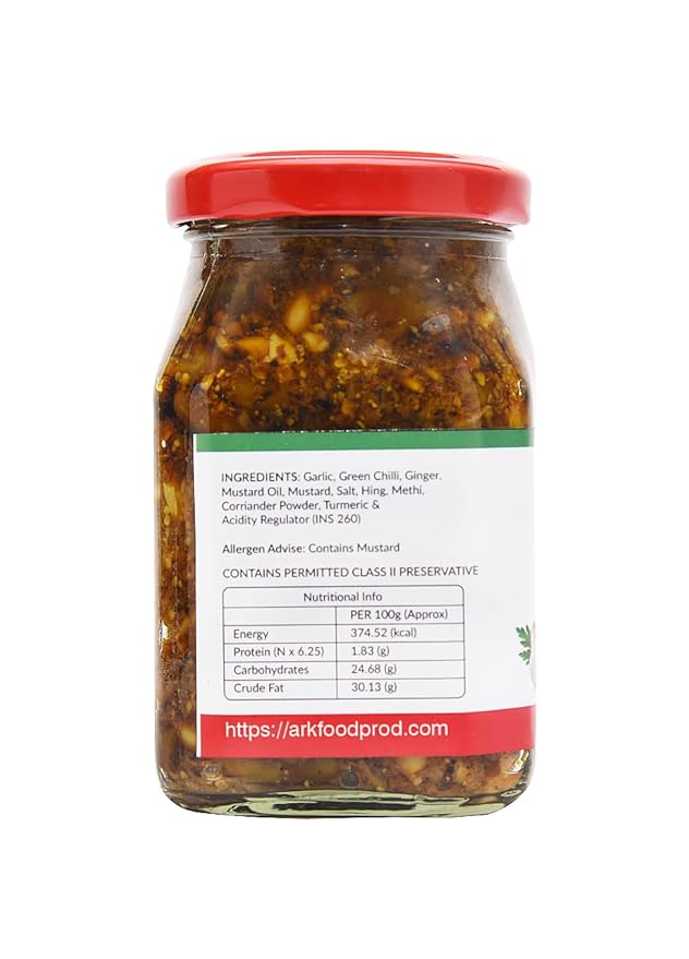 High Quality Ingredients: Crafted with premium-grade Green Chilli, Ginger, Garlic, Mustard oil, Acidity Regulator (INS 260) & acidity regulator, this blend is meticulously prepared without the use of artificial colors or flavors.